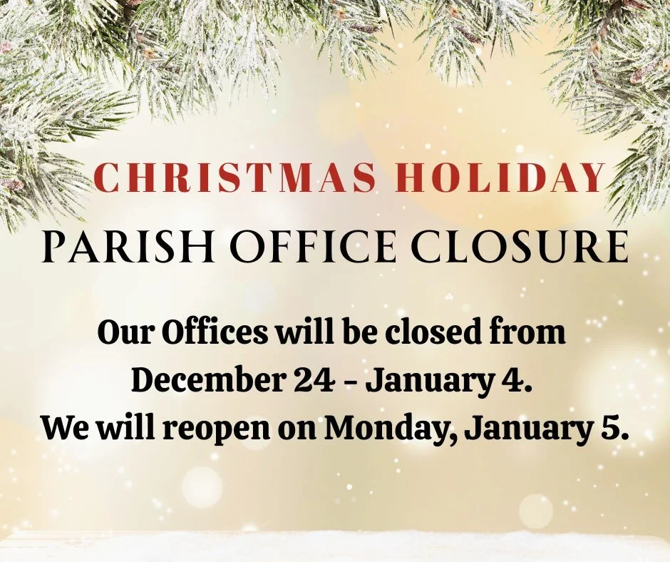 The Parish Office will be closed from Thursday, December 24th through Sunday, January 4th.